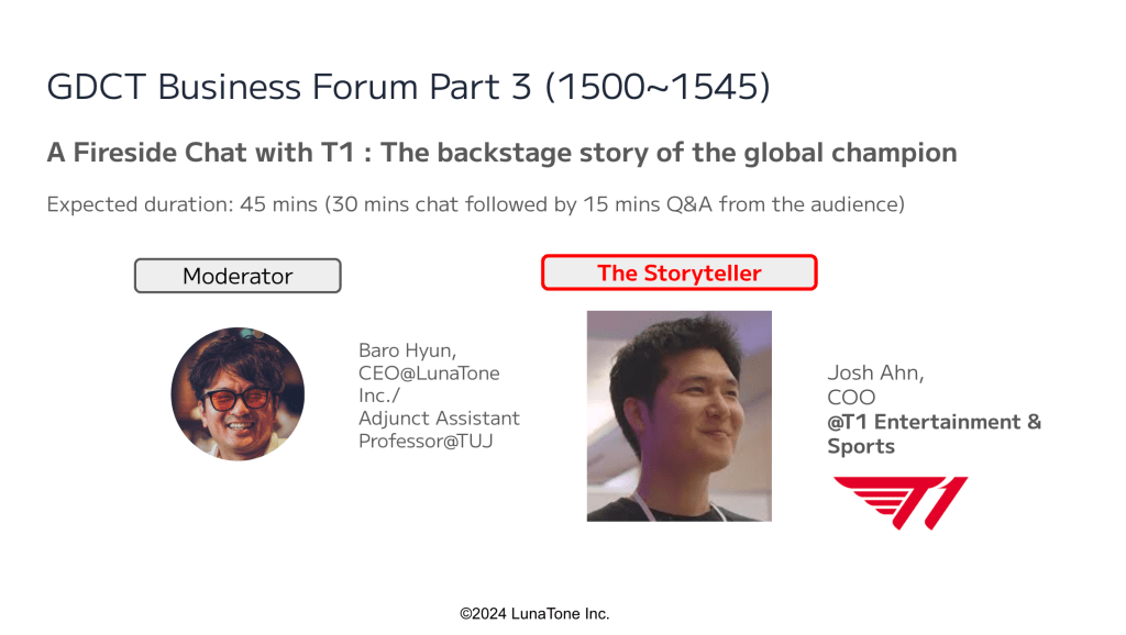 ③ Part 3 (15:00~15:45): A Fireside Chat with T1: the Backstage Story of the Global Champion Team